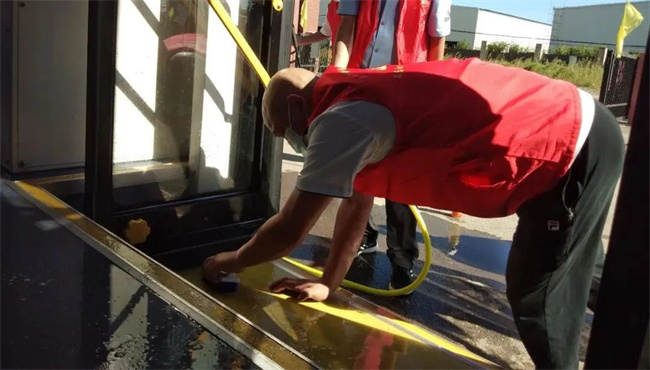 通運公司志愿服務(wù)隊來到239路車隊,細化防控措施,在公交停車場對乘客候車區(qū)進行不間斷消毒,同時協(xié)助公交駕駛員嚴(yán)格實行公交車返場后的集中消毒及車輛通風(fēng)、清潔等工作,特別是對車廂內(nèi)座椅、扶手等乘客易接觸的部位進行深度消殺,做到不留死角、不留盲區(qū),全方位保障乘客出行安全。