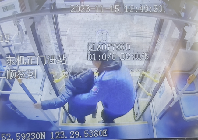 到達(dá)終點(diǎn)站東機(jī)正門,這位老人起身準(zhǔn)備下車,劉仁順主動上前再次抱著老人向車下走去,并將手推車交到老人手中,老人向劉仁順表示了感謝后準(zhǔn)備離開。