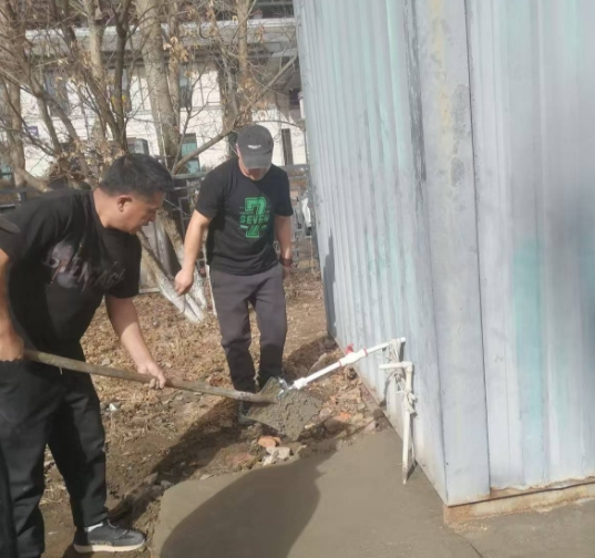 活動(dòng)中,大家紛紛拿起工具,搬運(yùn)沙子、水泥和磚頭,經(jīng)過兩個(gè)多小時(shí)的不懈努力,原本泥濘的地面得到了有效加固,場(chǎng)區(qū)環(huán)境得到了改善。