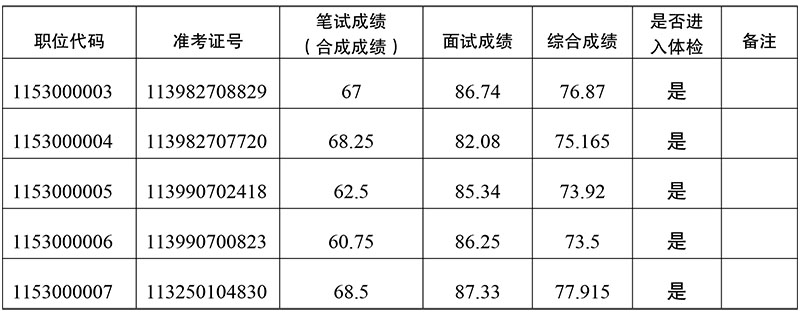 按照筆試成績、面試成績各占50%的比例合成,筆試成績、面試成績四舍五入后均保留至小數(shù)點后2位,綜合成績四舍五入后保留至小數(shù)點后3位。具體綜合成績詳見附件。