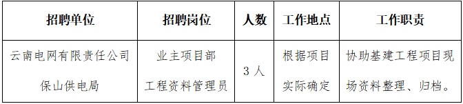 保山供電局項目制用工招聘公告