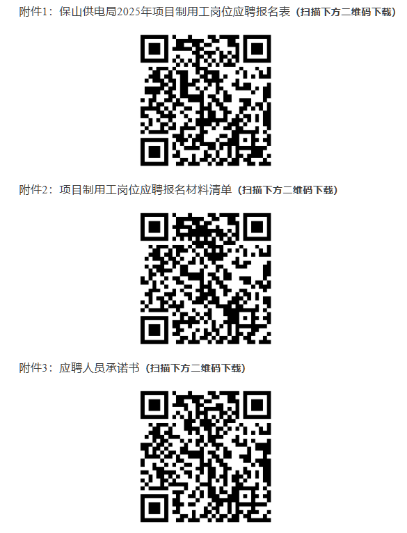 應聘人員按照《附件1:保山供電局2025年項目制用工崗位應聘報名表》填寫個人報名信息,并根據(jù)《附件2:項目制用工崗位應聘報名材料清單》提供項目報名材料,簽訂《附件3:應聘人員承諾書》。