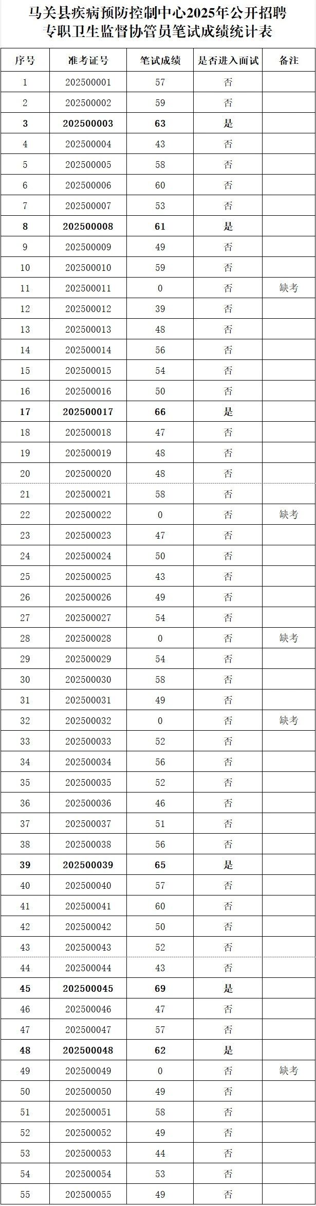 附件:馬關(guān)縣疾病預(yù)防控制中心(馬關(guān)縣衛(wèi)生監(jiān)督所)2025年公開招聘專職衛(wèi)生監(jiān)督協(xié)管員筆試成績(jī)統(tǒng)計(jì)表