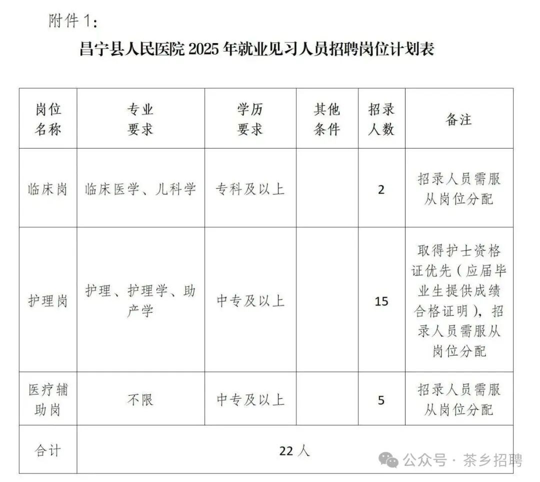 附件:1.昌寧縣人民醫(yī)院2025年就業(yè)見習人員招聘崗位計劃表;