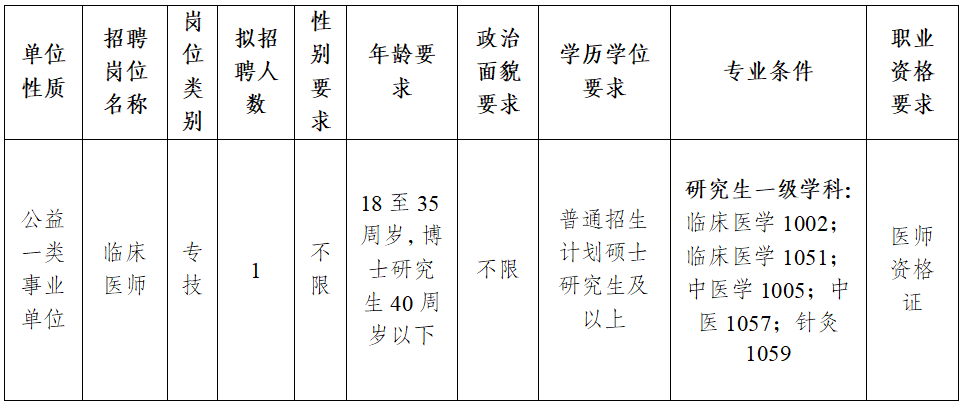 公開招聘普通招生計劃碩士研究生及以上學歷人員1名。具體招聘崗位及招聘條件如下: