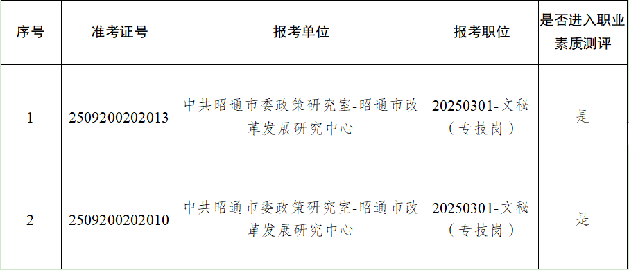 昭通市改革發(fā)展研究中心2025年公開選調(diào)工作人員職業(yè)素質(zhì)測評人員名單