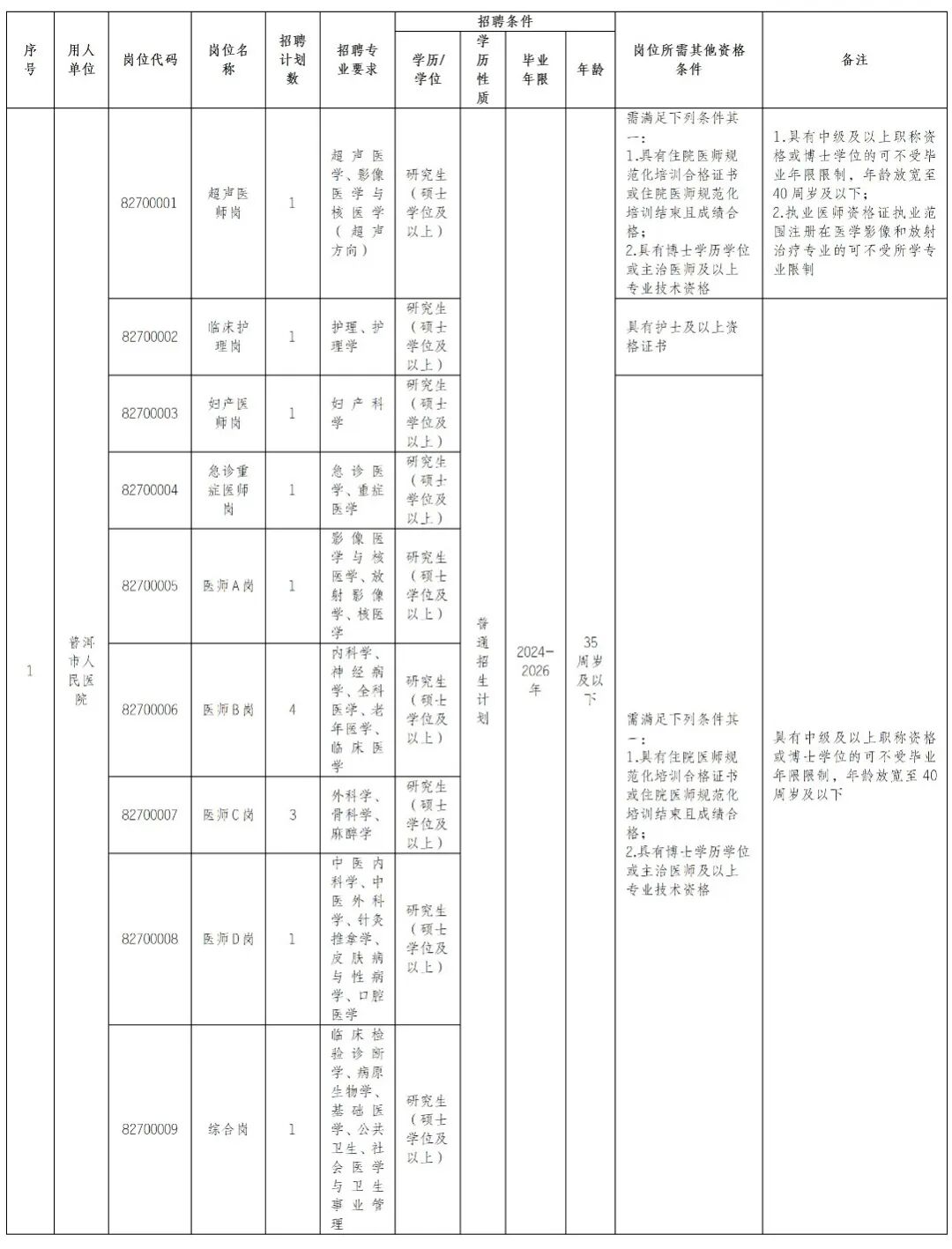 附件1.2026年度普洱市市直醫(yī)療衛(wèi)生事業(yè)單位急需緊缺人才招聘崗位表.xlsx