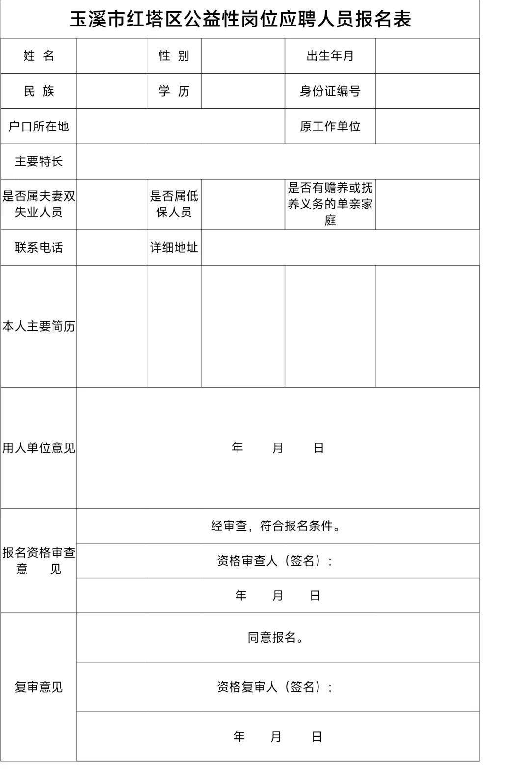 附件:玉溪市紅塔區(qū)公益性崗位應(yīng)聘人員報(bào)名表