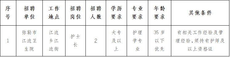 彌勒市緊密型市域醫(yī)共體江邊分院公開(kāi)招聘合同制護(hù)士公告