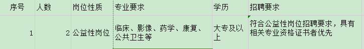 招聘2人:公益性崗位,具體要求詳見(jiàn)下表: