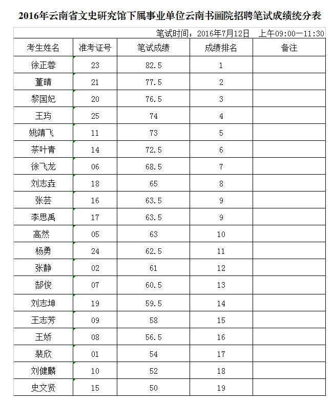 昆醫(yī)附一院2016年公招人員(事業(yè)編制)成績和擬聘公示
