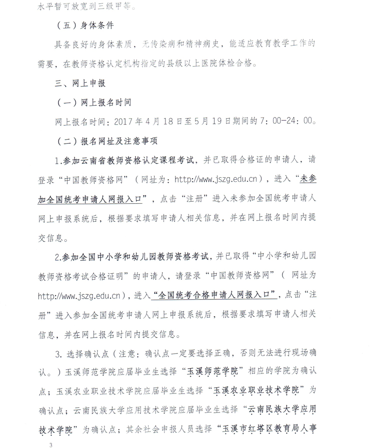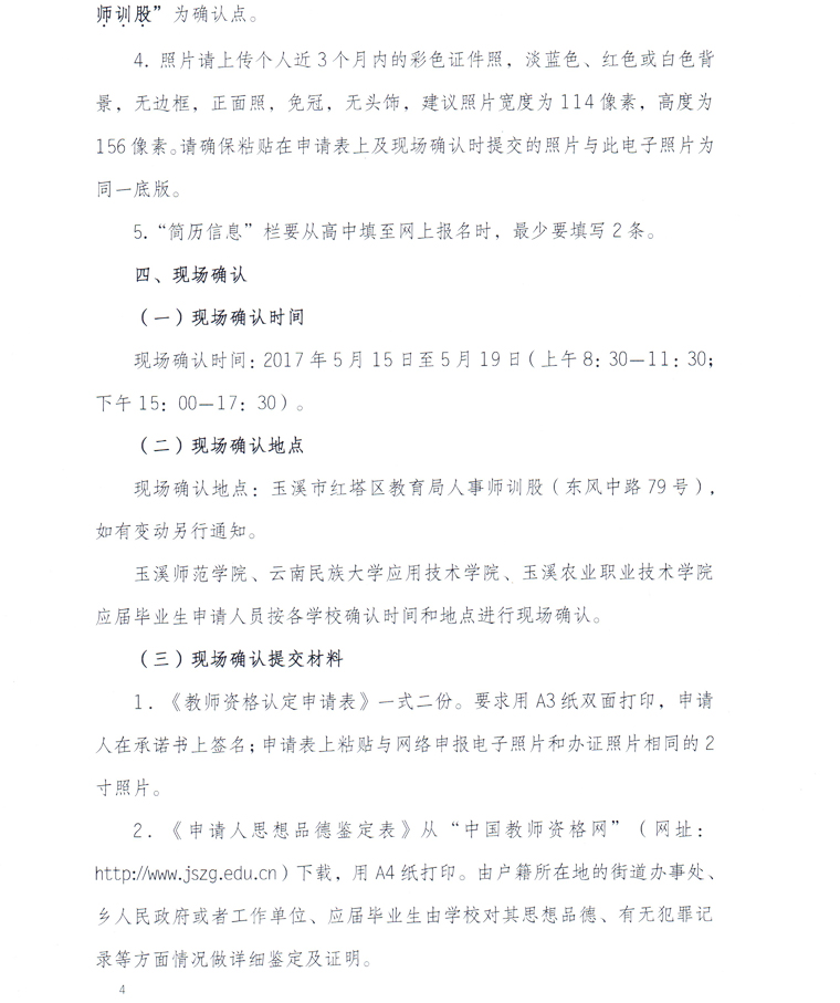 玉溪市紅塔區(qū)2017年教師資格認(rèn)定工作安排通知