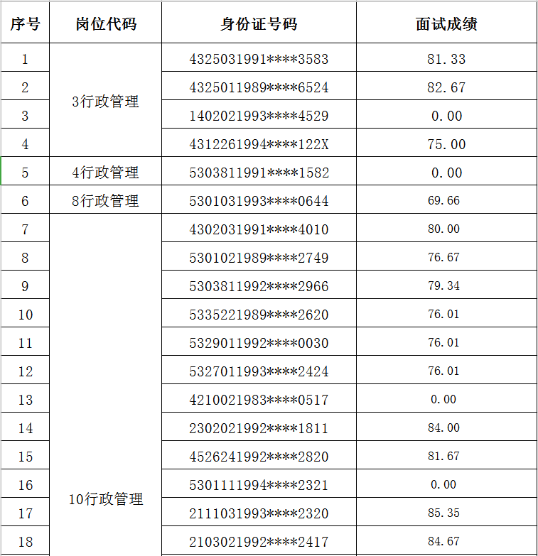 云南高創(chuàng)人才服務有限公司為 云南藝術學院招聘勞務派遣制員工面試成績公布 云南高創(chuàng)人才服務有限公司為云南藝術學院招聘勞務派遣制員工2019年12月20日面試成績結果如下: 請各位通過面試的考生保持電話暢通,工作人員會進行電話聯(lián)系。